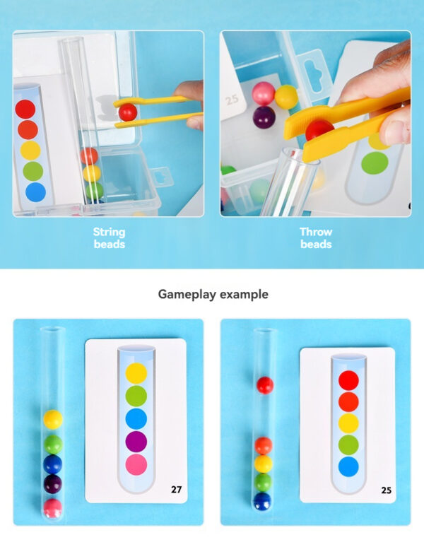 Includes colorful beads, transparent test tubes, 24 double-sided pattern cards, child-safe tweezers, and a storage box to keep the game organized