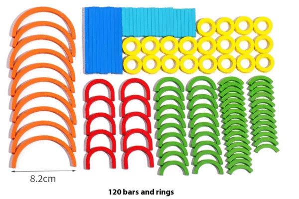 - 120 sticks and rings in various colors.