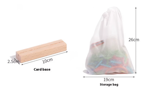 - 1 wooden base to hold the cards.