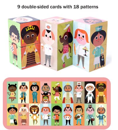 The Face Change Cube is a fun and educational wooden toy designed to develop memory, observation, and fine motor skills. It comes with 9 double-sided cards featuring 18 patterns and 18 colorful cartoon faces, giving children endless opportunities to match, stack, and create puzzles.