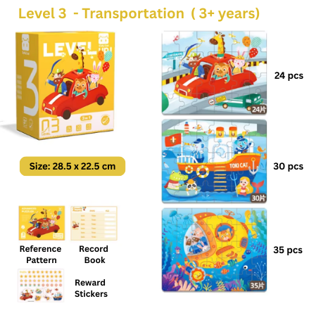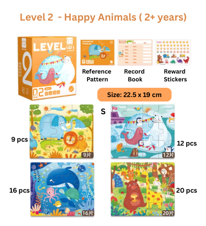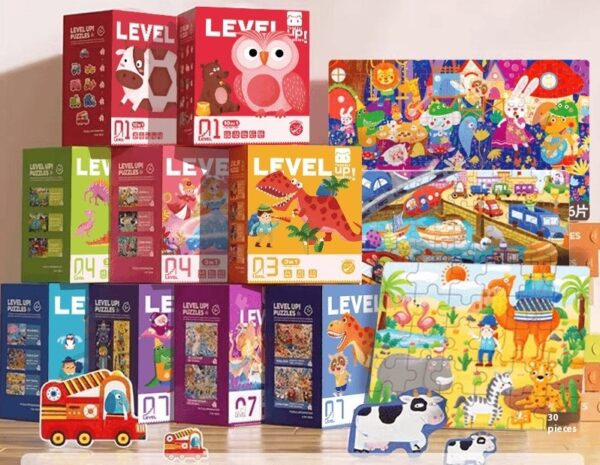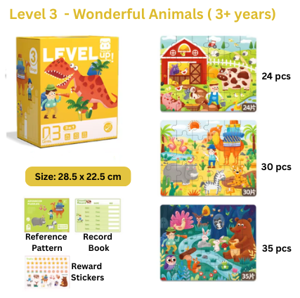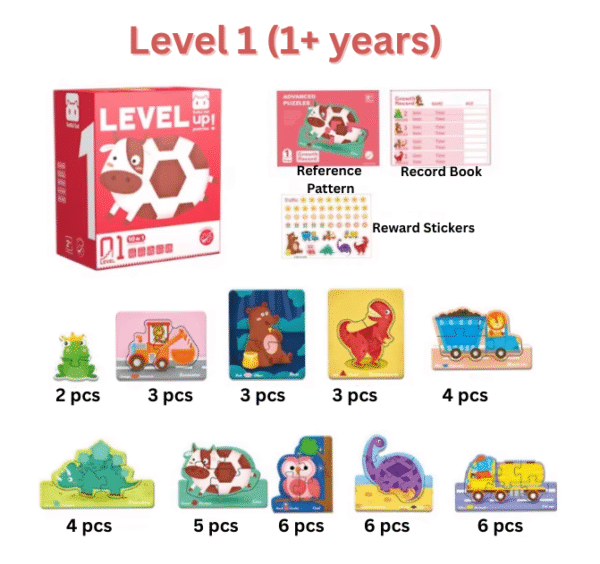 Progressive Wooden Puzzle (7 Levels – 13 Themes) (From 1+ till 7+ years)