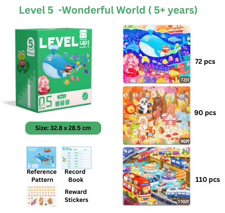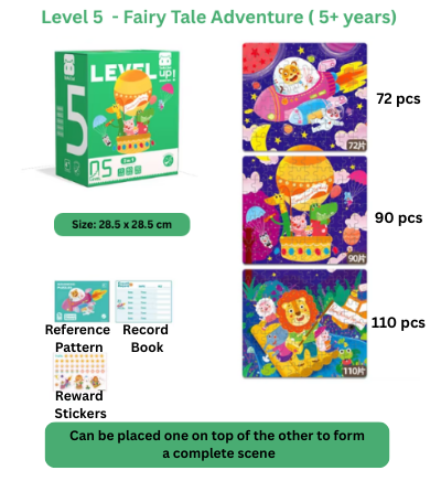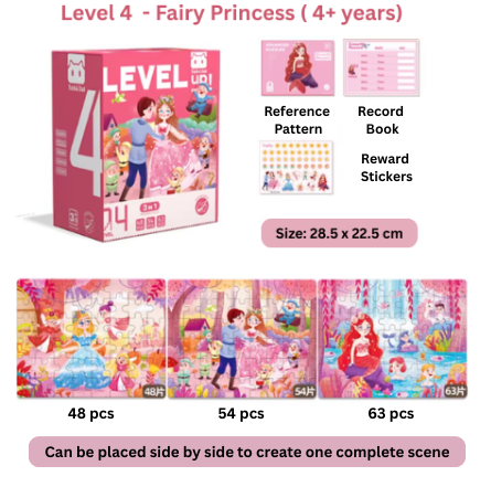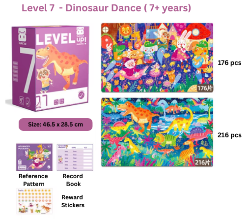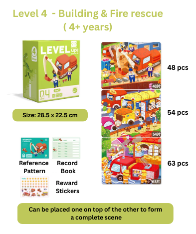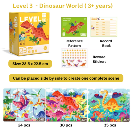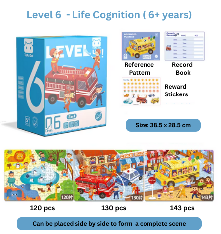 | Theme | Level 1 ( 1+ years), Level 2 – Happy Animals ( 2+ years ), Level 2 – Transportation ( 2+ years ), Level 3 – Dinosaur World ( 3 + years ), Level 3 – Transportation ( 3+ years ), Level 3 – Wonderful Animals ( 3+ years ), Level 4 – Building & Fire Rescue ( 4+ years ), Level 4 – Dinosaur Paradise ( 4+ years ), Level 4 – Fairy Princess ( 4+ years ), Level 5 – Fairy Tale Adventure ( 5+ years ), Level 5 – Wonderful World ( 5+ years ), Level 6 – Life Cognition ( 6+ years ), Level 7 – Dinosaur Dance ( 7+ years ) |