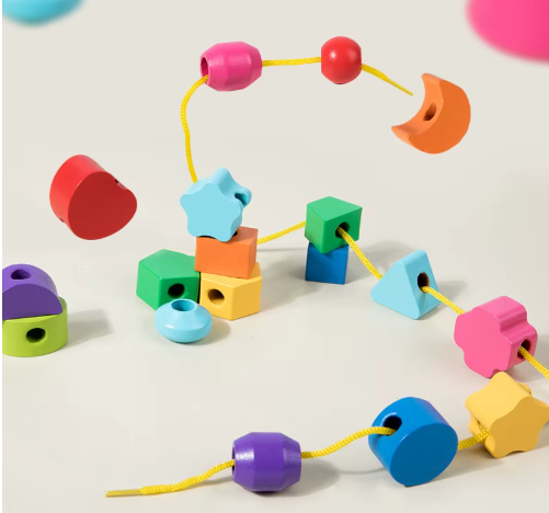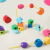 Easy-to-thread laces help children learn colors and shapes through hands-on play. -