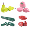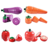 Fruits and vegetables are connected by magnets for easy cutting and reassembly